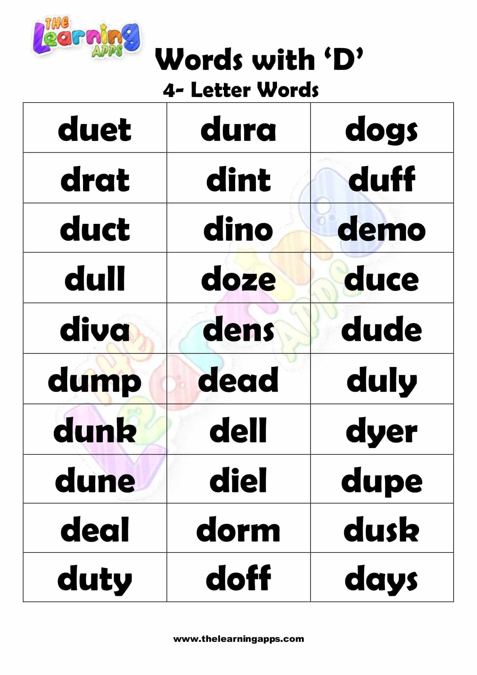 4 LETTER WORD STARTING WITH D-3 View All Worksheets