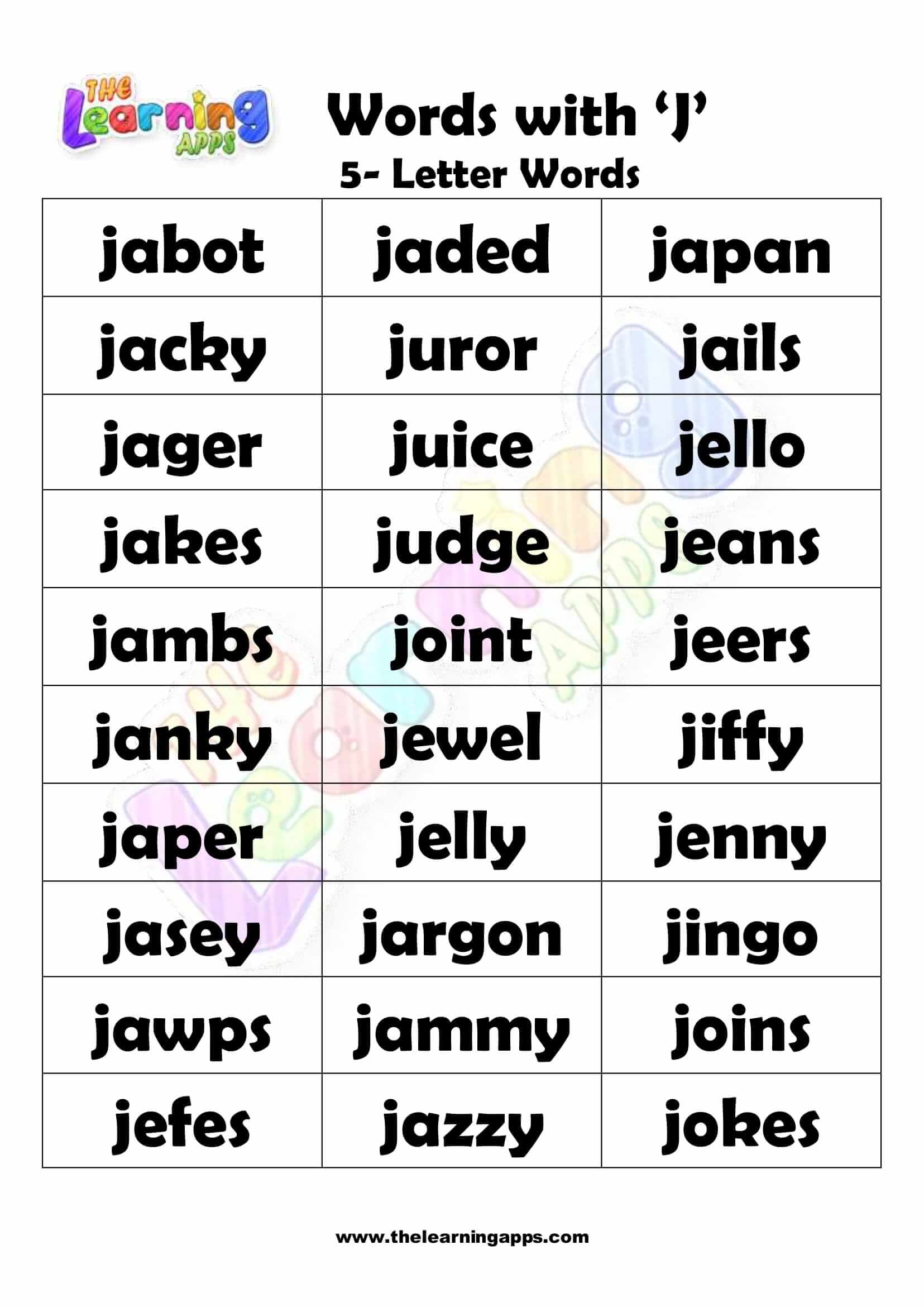 5 LETTER WORD STARTING WITH J View All Worksheets
