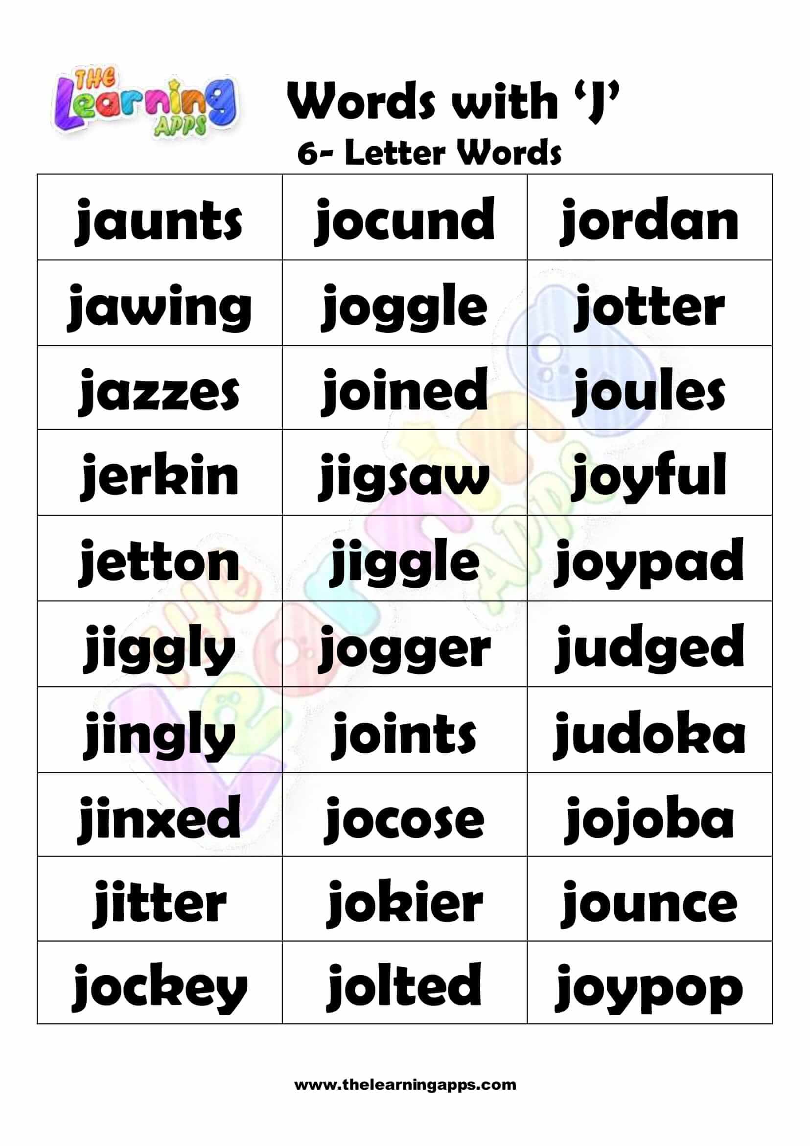 6 LETTER WORD STARTING WITH J-2 View All Worksheets
