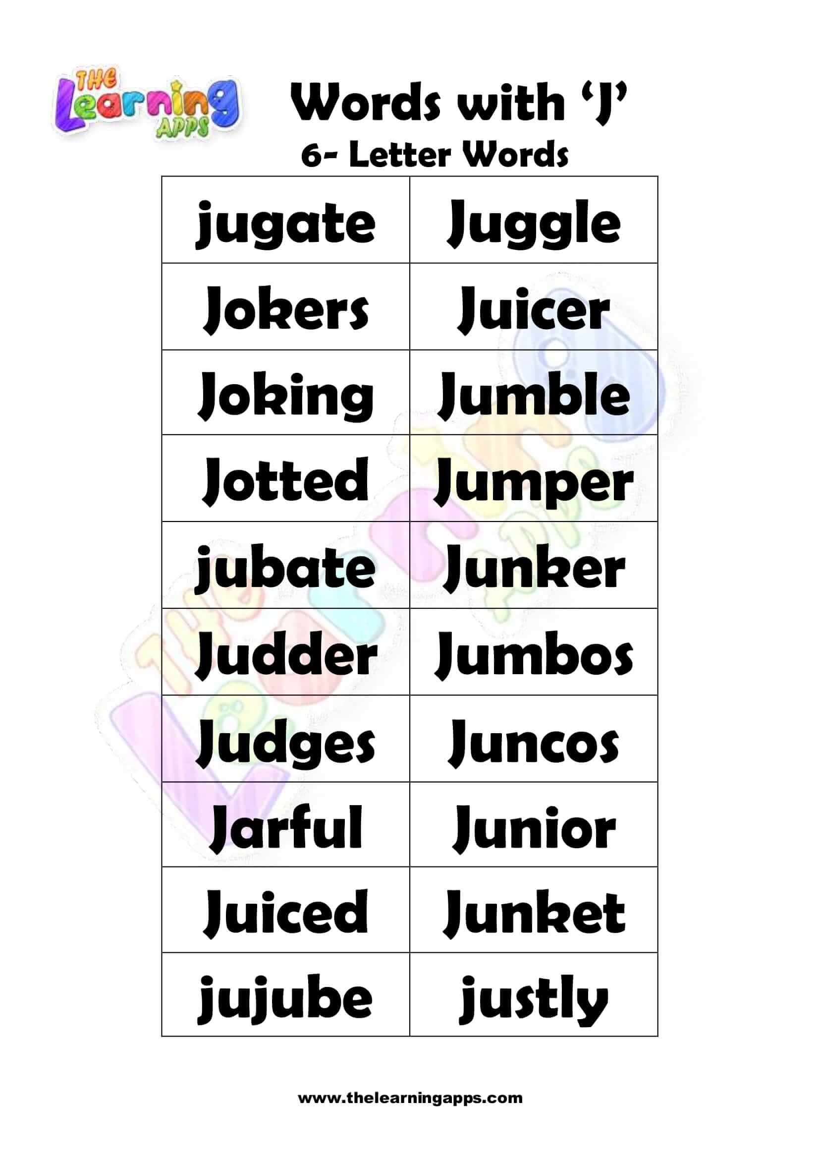 6 LETTER WORD STARTING WITH J-3 View All Worksheets