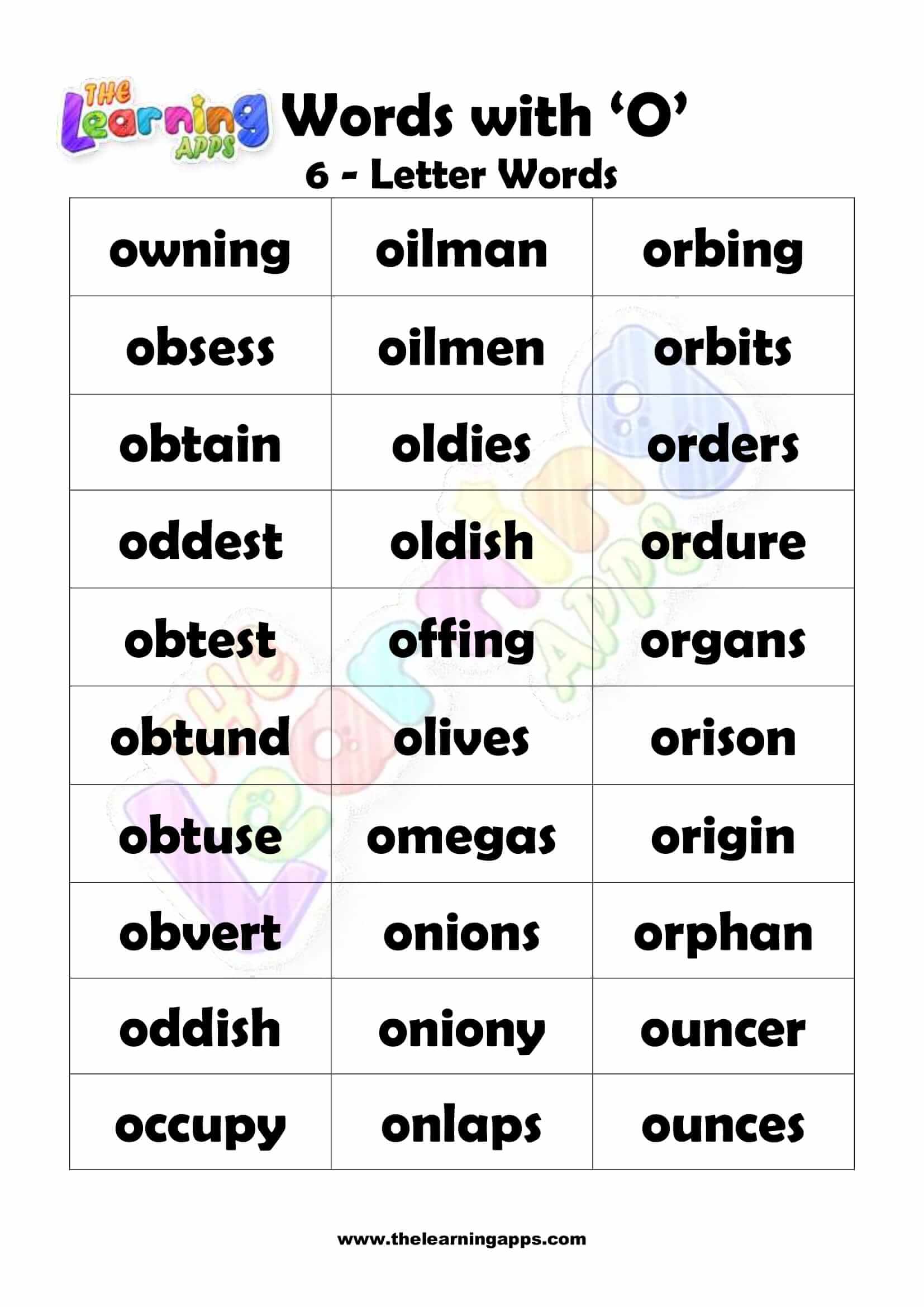 6 LETTER WORD STARTING WITH O-2 View All Worksheets