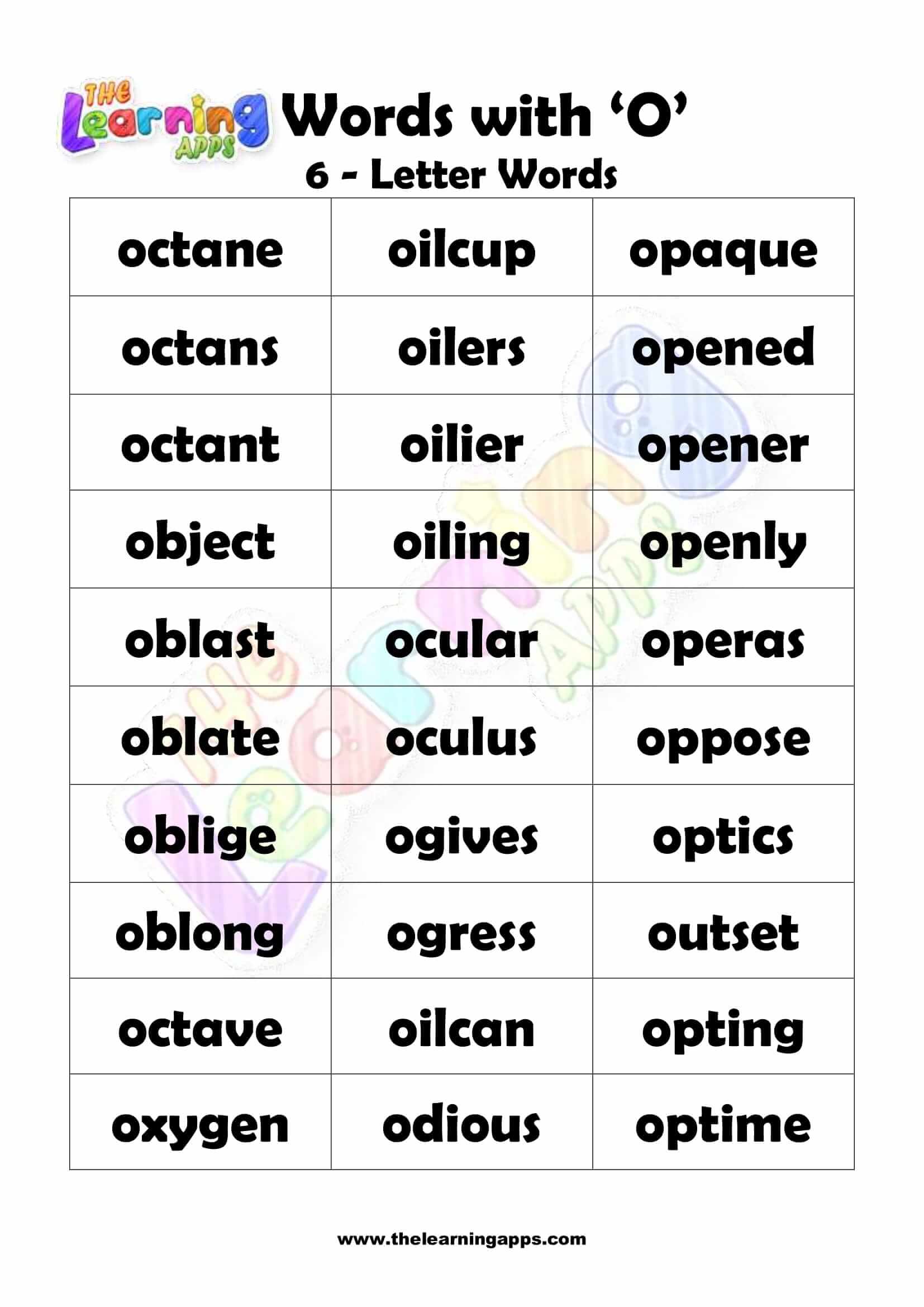 6 LETTER WORD STARTING WITH O View All Worksheets