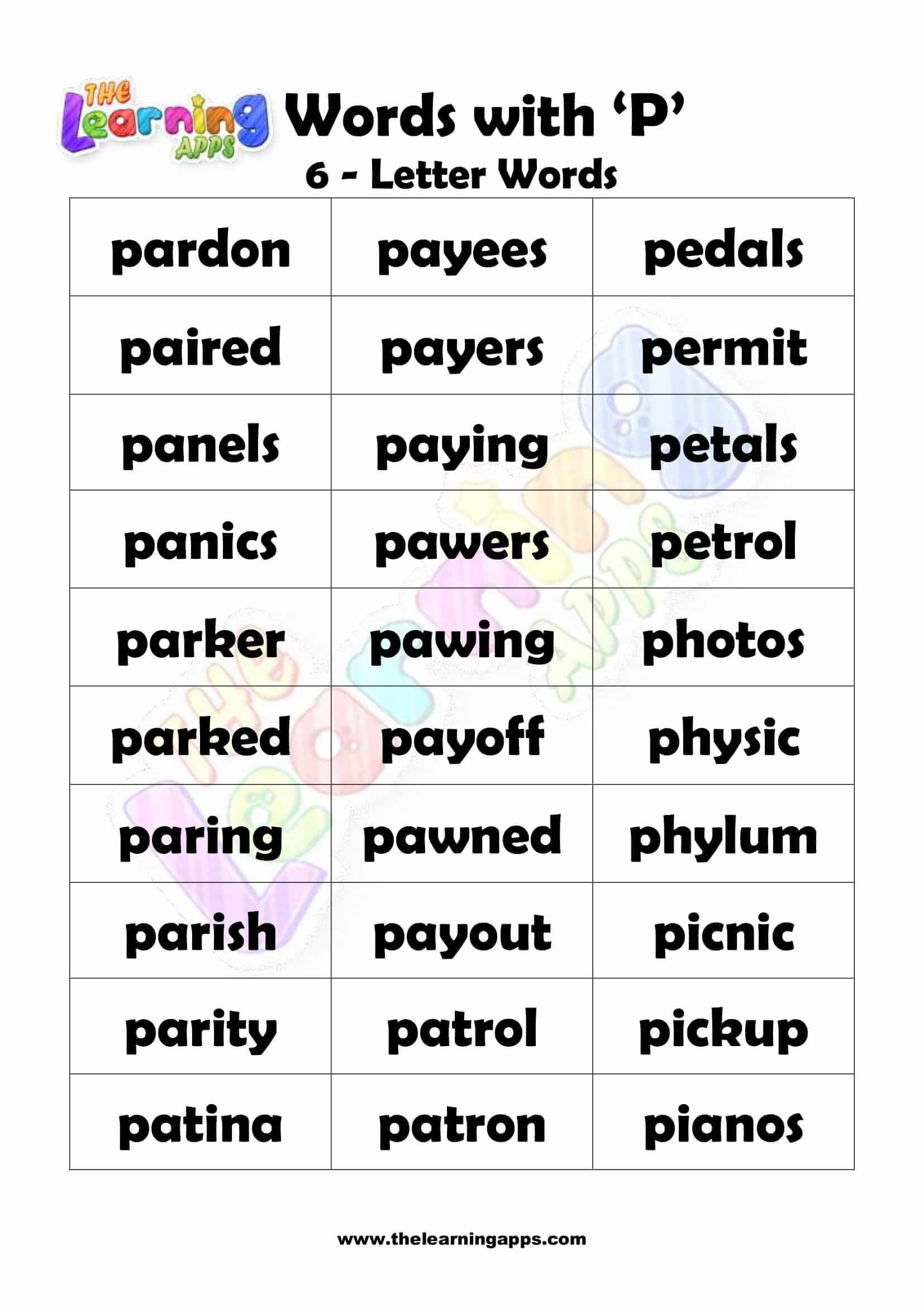 6 LETTER WORD STARTING WITH P-3 View All Worksheets
