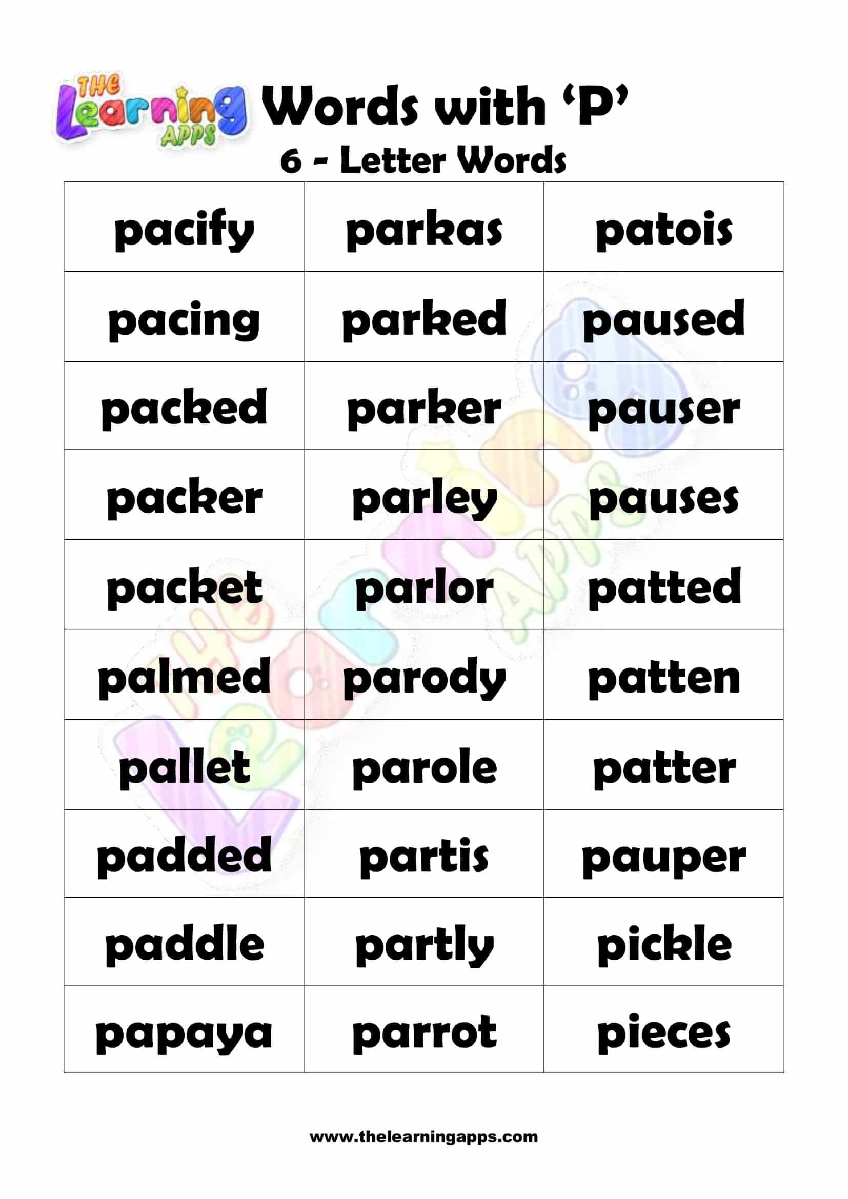 6 LETTER WORD STARTING WITH P View All Worksheets