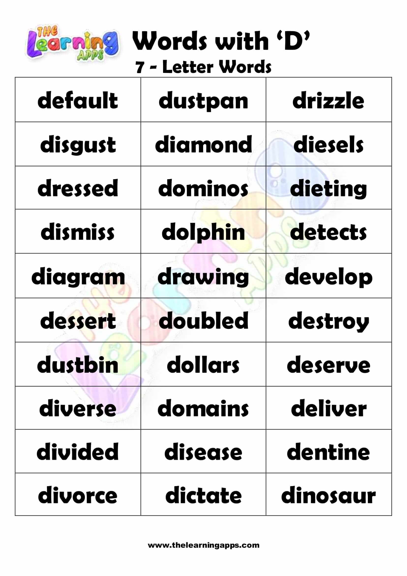 7 LETTER WORD STARTING WITH D View All Worksheets