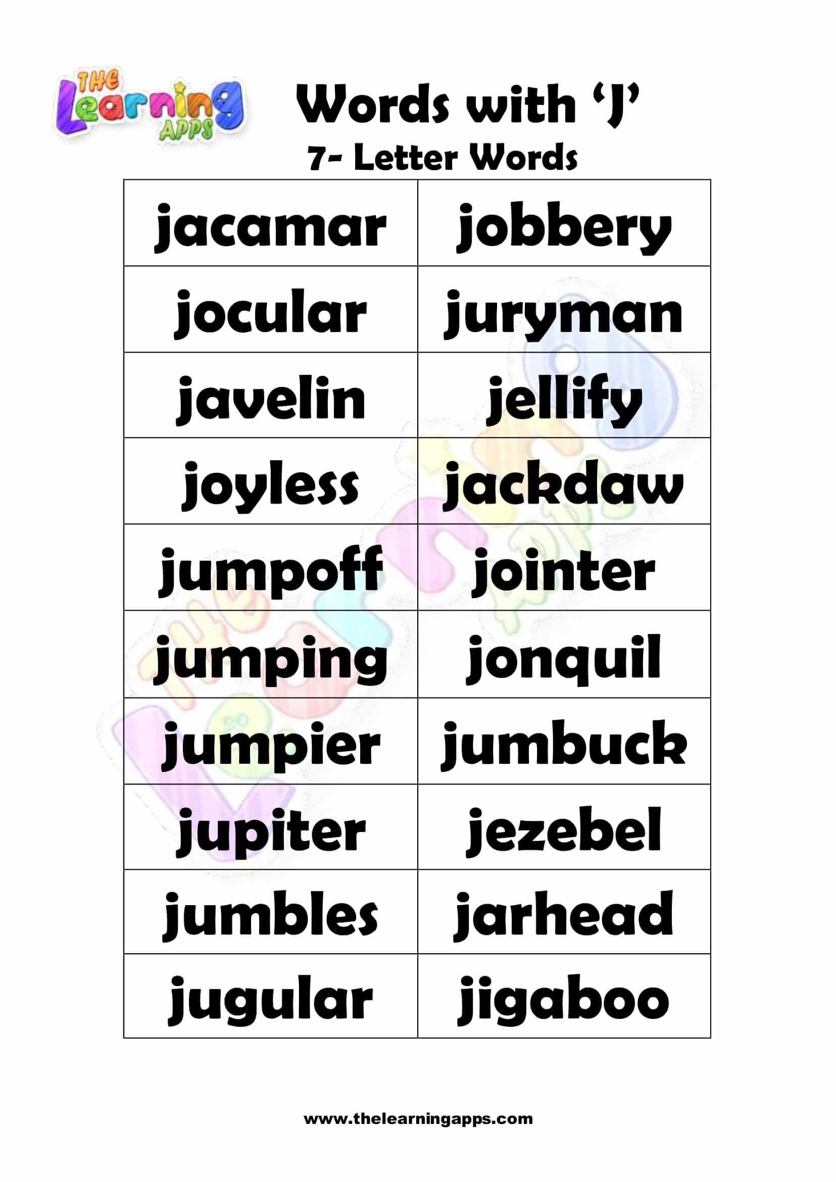 Download free printable 7 Letter words that start with J. Introduce kids to these Alphabet worksheets before starting their education. Try Now It’s free!