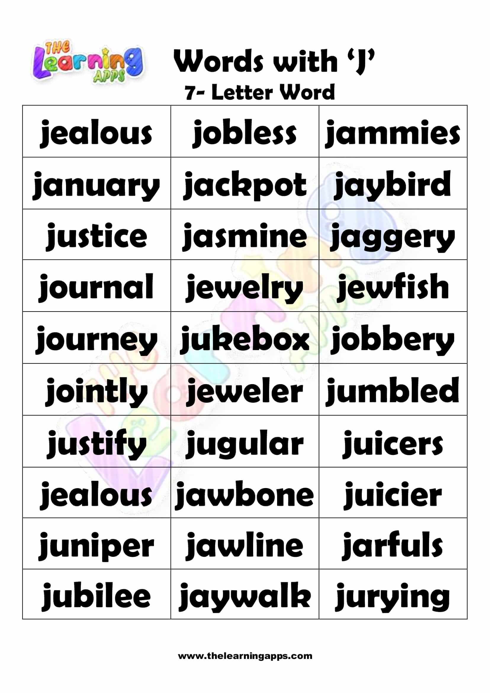 7 LETTER WORD STARTING WITH J View All Worksheets