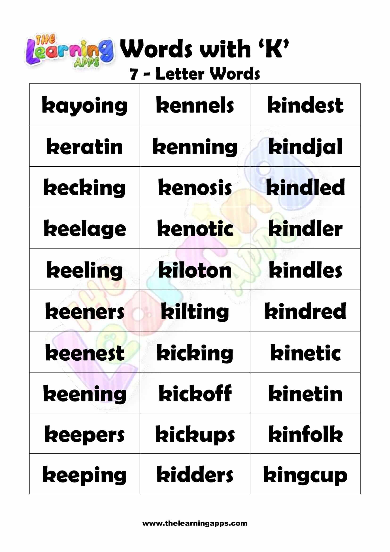 7 LETTER WORD STARTING WITH K View All Worksheets