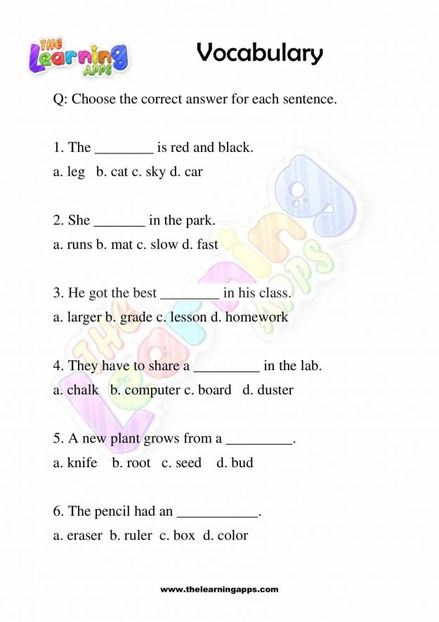 Vocabulary Grade 1 Worksheets 10