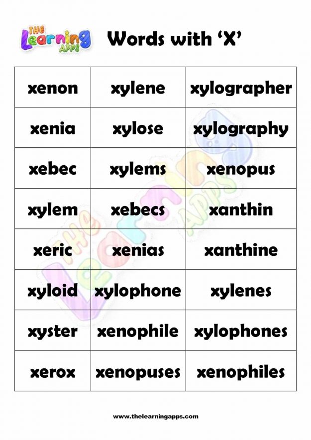 Words that Start with X Worksheet