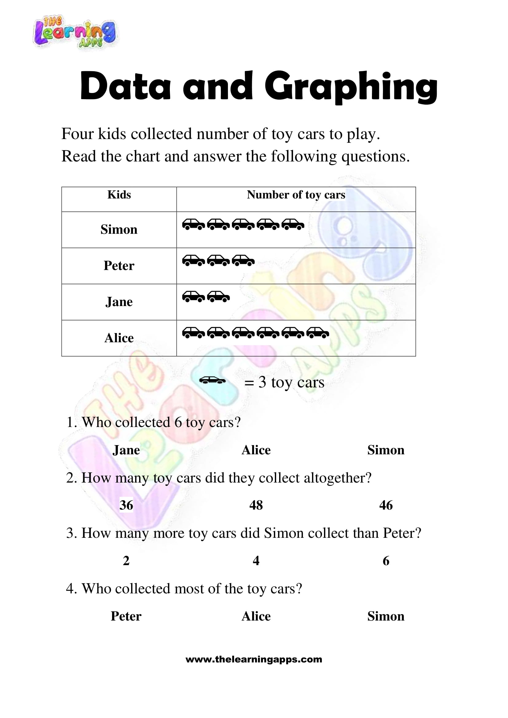 These interesting 3rd grade math data and graphing activities worksheets by The Learning Apps expand on the essential abilities of gathering data, charting, and analyzing it. The 3rd grade math data and graph worksheets are made in a way that the students will find interesting, as a result, the academic performances will be improved.