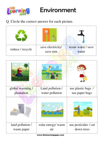 Studying the Environment can be challenging for little kids, but learning about our Environment is also very important. Download a variety of free Environment Worksheet 06 for kids to improve their skills. This printable worksheet lets children have fun while learning.