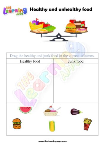 Explore our engaging and educational worksheet collection focused on educating kids about healthy foods like fruits and vegetables and unhealthy foods like junk food. Our carefully designed Healthy and Unhealthy Food Worksheet 07 introduces children to the concept of nutrition in a fun and interactive way. With colorful visuals and easy-to-understand content, these worksheets by The Learning Apps help young learners distinguish between nutritious choices and those that are not as beneficial. By downloading these worksheets, you provide your children with an opportunity to develop essential life skills while having a great time. Join us in promoting a foundation of wellness and smart food choices for your kids. Click now to access these valuable resources and promote healthy habits!