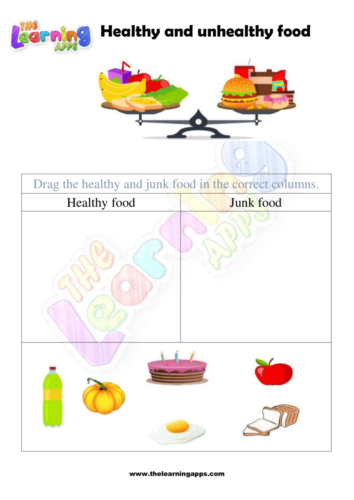 Explore our engaging and educational worksheet collection focused on educating kids about healthy foods like fruits and vegetables and unhealthy foods like junk food. Our carefully designed Healthy and Unhealthy Food Worksheet 08 introduces children to the concept of nutrition in a fun and interactive way. With colorful visuals and easy-to-understand content, these worksheets by The Learning Apps help young learners distinguish between nutritious choices and those that are not as beneficial. By downloading these worksheets, you provide your children with an opportunity to develop essential life skills while having a great time. Join us in promoting a foundation of wellness and smart food choices for your kids. Click now to access these valuable resources and promote healthy habits!