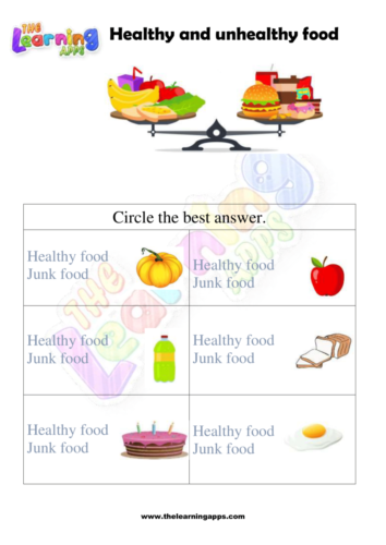 Explore our engaging and educational worksheet collection focused on educating kids about healthy foods like fruits and vegetables and unhealthy foods like junk food. Our carefully designed Healthy and Unhealthy Food Worksheet 10 introduces children to the concept of nutrition in a fun and interactive way. With colorful visuals and easy-to-understand content, these worksheets by The Learning Apps help young learners distinguish between nutritious choices and those that are not as beneficial. By downloading these worksheets, you provide your children with an opportunity to develop essential life skills while having a great time. Join us in promoting a foundation of wellness and smart food choices for your kids. Click now to access these valuable resources and promote healthy habits!