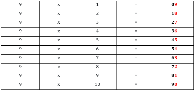 Write the counting 0 to 9 top to bottom and then bottom to top 0 to 9 when have our complete table.