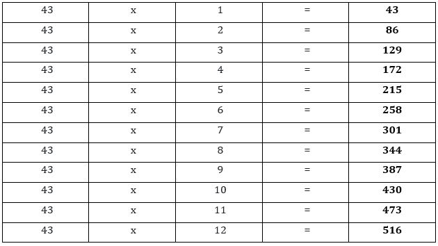 A multiplication table is a group of multiplication of a particular number. Usually, it is from 2 to 12.