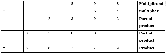 This method is very convenient when you deal with small numbers or larger numbers with small times of additions. But the method is very touched if we choose a larger number like 64*598. It means we have added 64 by 598 times.