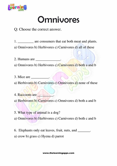 Omnivores Worksheets for Grade 3 – Activity 3Â View All Worksheets