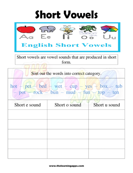 Download this Short Vowel Worksheet 01 for free today. This short vowel worksheet is perfect for kids of all ages. This worksheet helps kids identify vowels and consonants but also helps them understand the basic grammar rules and how to enunciate different words. Click on the download button and download this free short vowel worksheet today!