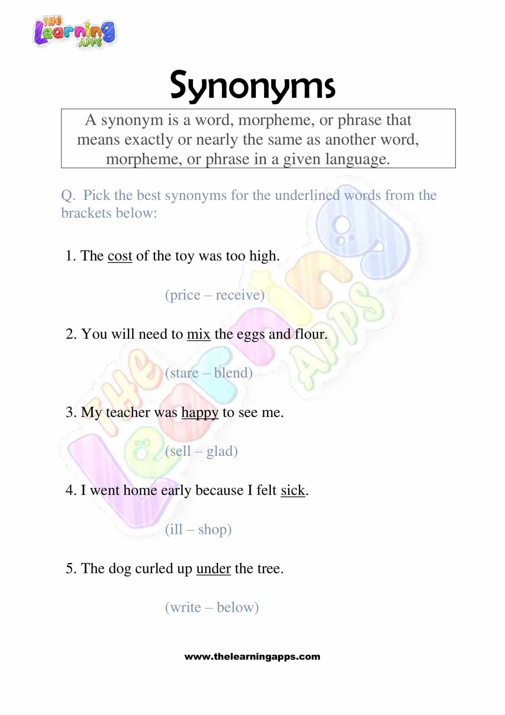 Synonyms Worksheet 06 View All Activities