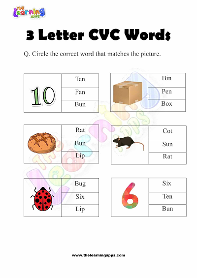3 Letter CVC Words Worksheets for Kindergarten – Activity 5 View All Worksheets