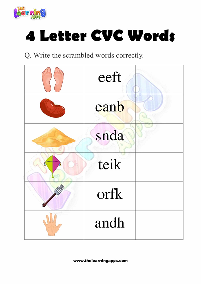 4 Letter CVC Words Worksheets for Kindergarten – Activity 8 View All Worksheets