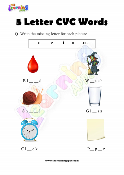 5 Letter CVC Words Worksheets for Kindergarten – Activity 2 View All Worksheets