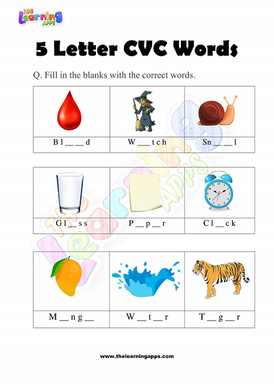 5 Letter CVC Words Worksheets for Kindergarten – Activity 3 View All Worksheets