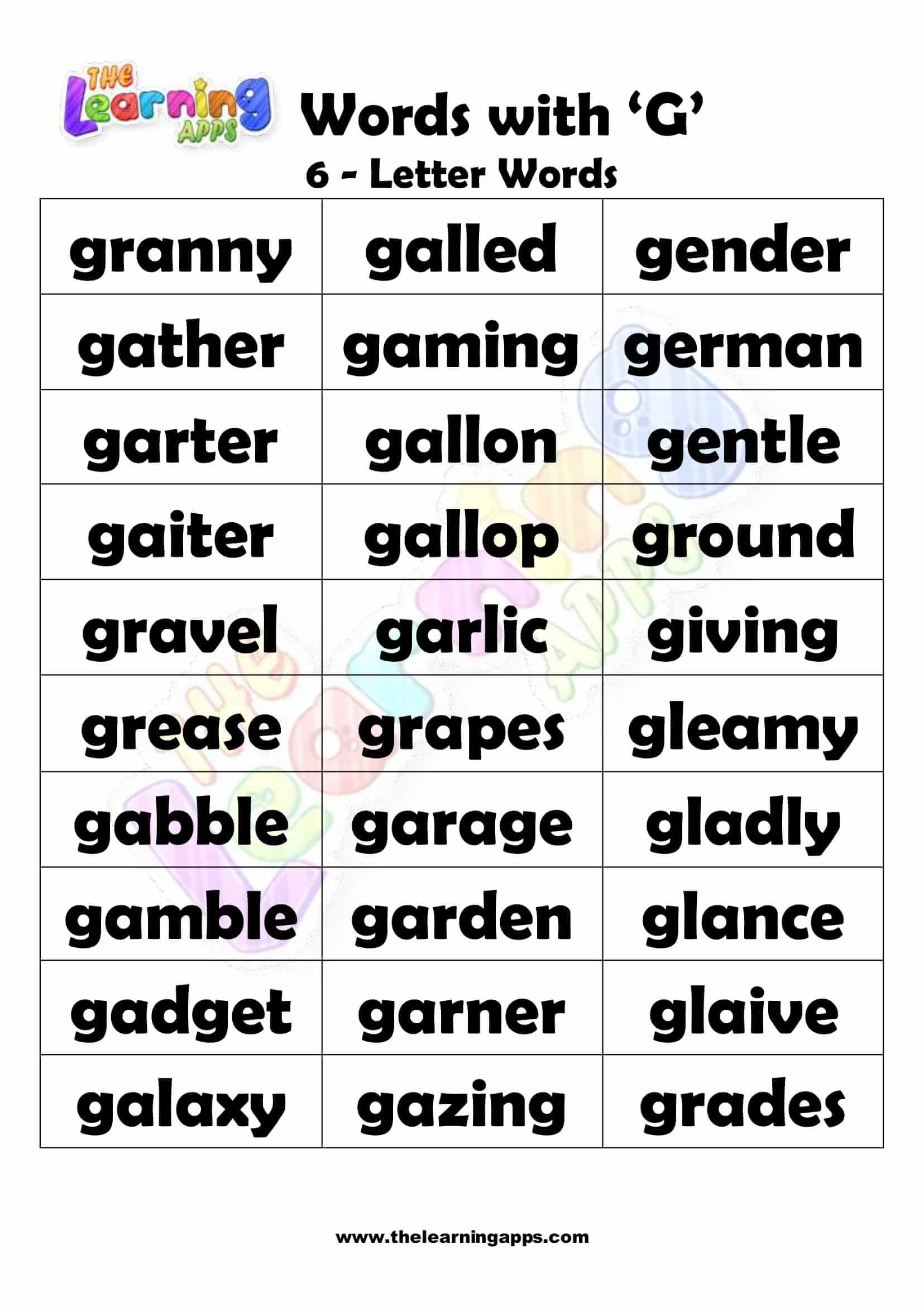 6 LETTER WORD STARTING WITH G View All Worksheets