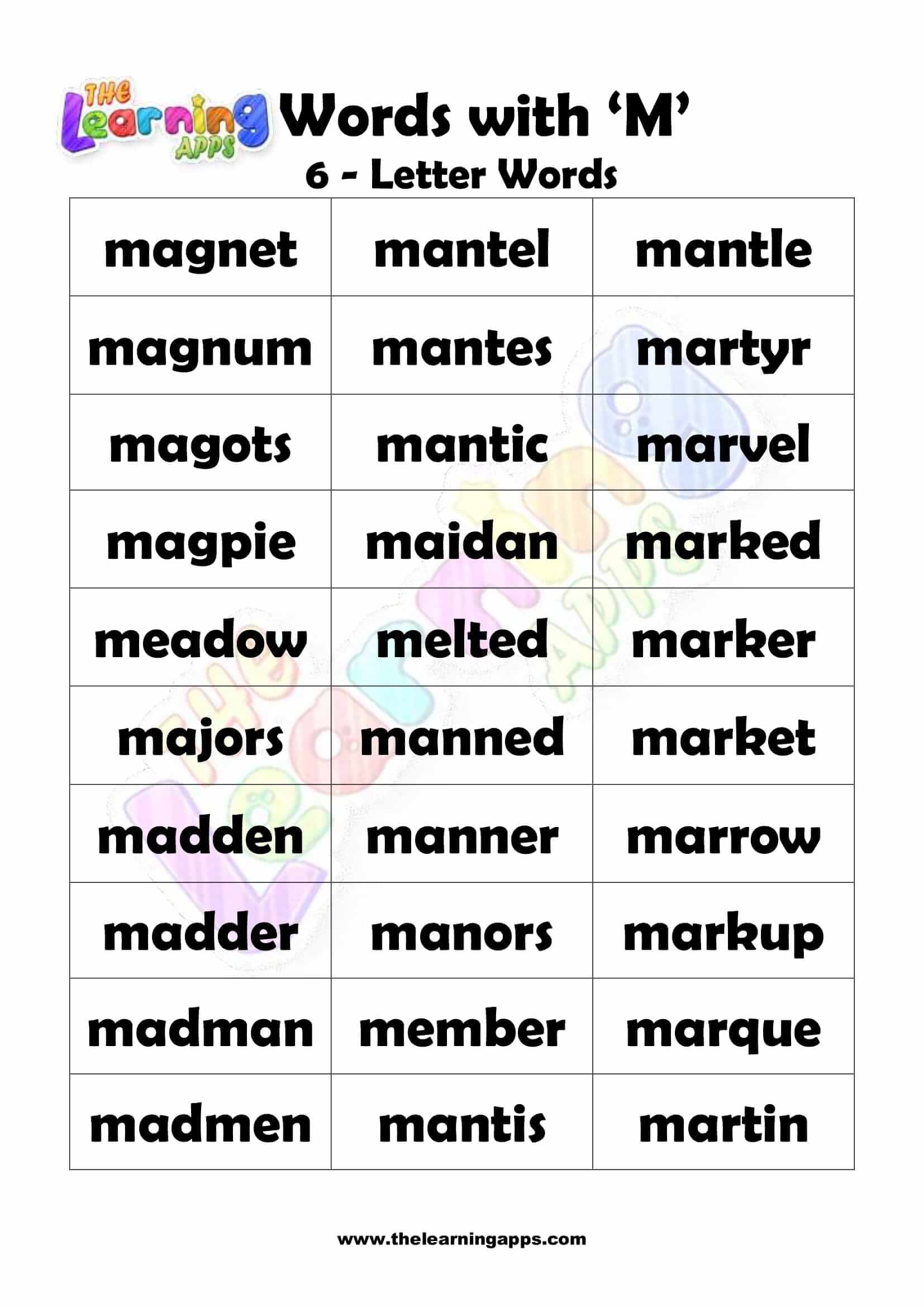 6 LETTER WORD STARTING WITH M-2 View All Worksheets