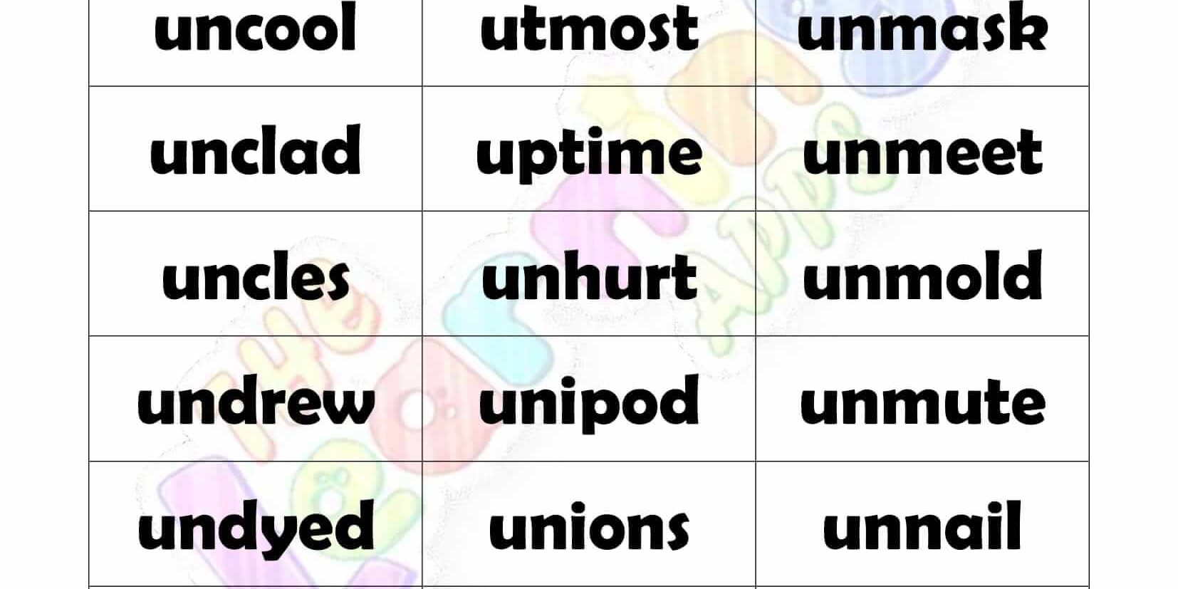6 LETTER WORD STARTING WITH U-3 View All Worksheets