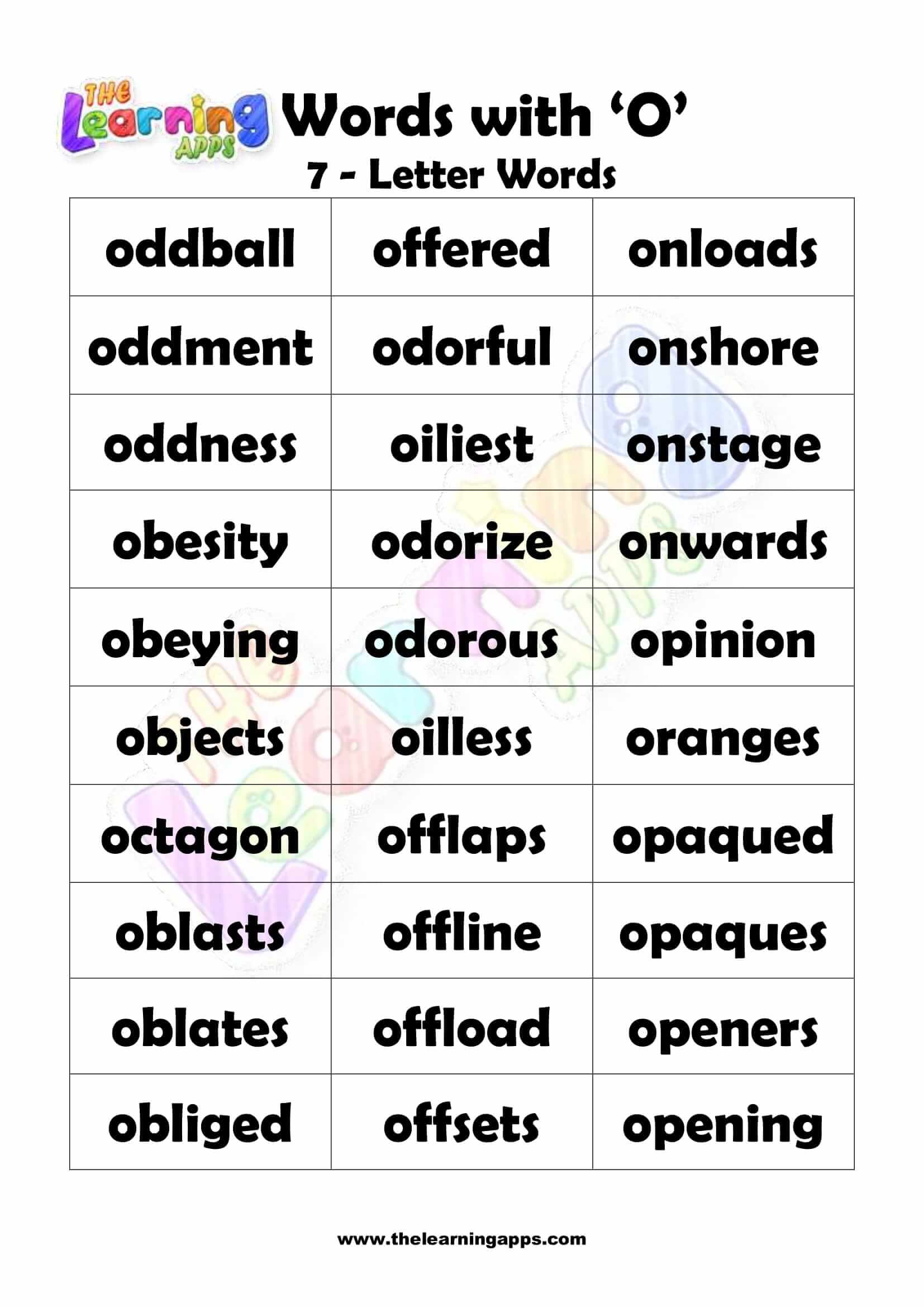 Download free printable 7 Letter words that start with O. Introduce kids to these Alphabet worksheets before starting their education. Try Now It’s free!