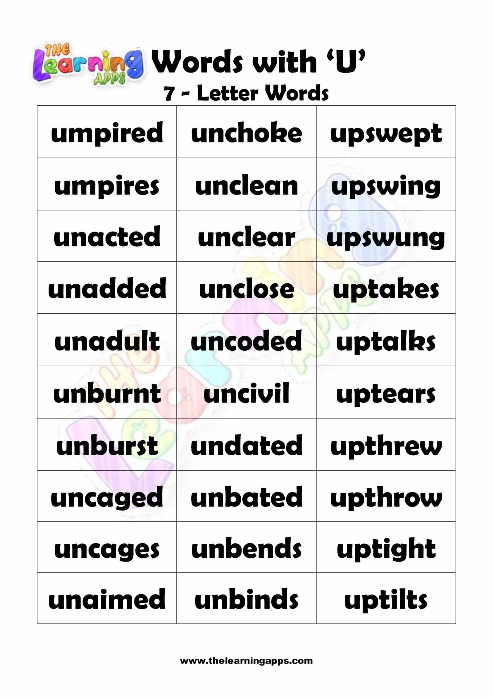 7 LETTER WORD STARTING WITH U View All Worksheets