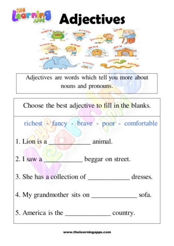 Download and get this free adjectives worksheet 08 for your kids. Learning about adjectives assists kids in effective verbal and written communication, so hit on the download button and get this free adjectives worksheet and make learning fun, exciting, and engaging.