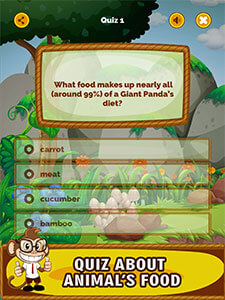 This animal zoo quiz for kids app will help kids learn about animal names, food they like, and more facts that will help them in their academic education.
