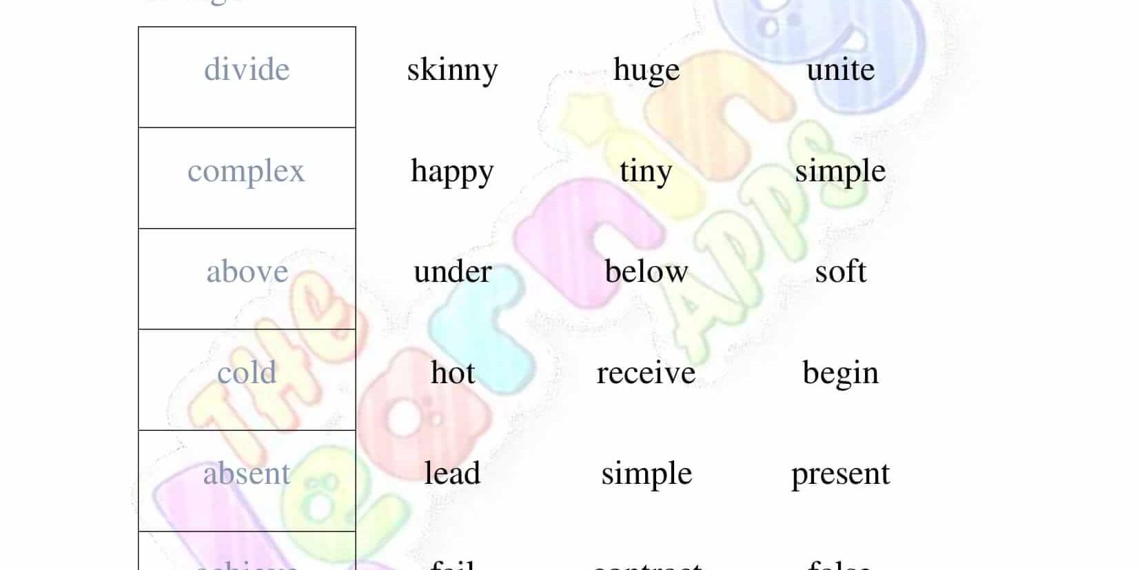 Views: 1,943 Coming soon.. Antonyms Grade 1 Worksheet 02 View All Activities Here you will have an educational and free printable Antonyms Grade 1 Worksheet for kids. By doing these worksheets, kids will learn about Antonyms in a fun and interactive way. Hit the download button and let the learning begin! Download View Category Antonyms Subject English Share This Related PostsAntonyms Grade 1 Worksheet 10August 16, 2022Antonyms Grade 1 Worksheet 09August 16, 2022Antonyms Grade 1 Worksheet 08August 16, 2022Antonyms Grade 1 Worksheet 07August 16, 2022Antonyms Grade 1 Worksheet 06August 16, 2022Antonyms Grade 1 Worksheet 05August 16, 2022