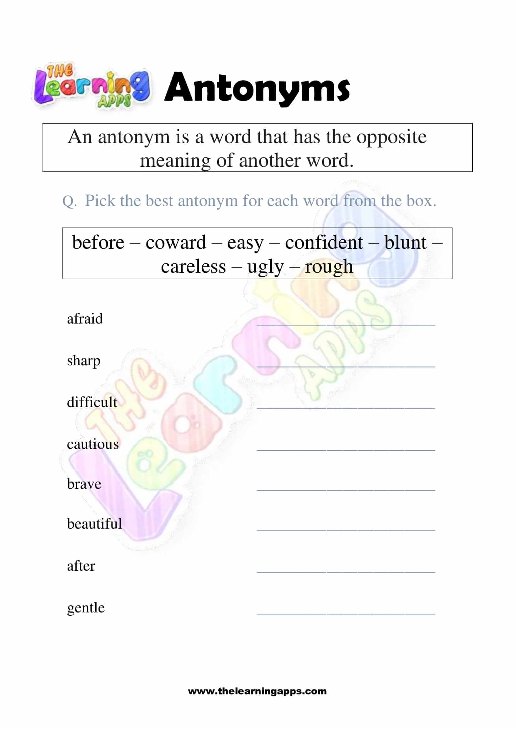 Views: 1,998 Coming soon.. Antonyms Grade 1 Worksheet 03 View All Activities Here you will have an educational and free printable Antonyms Grade 1 Worksheet for kids. By doing these worksheets, kids will learn about Antonyms in a fun and interactive way. Hit the download button and let the learning begin! Download View Category Antonyms Subject English Share This Related PostsAntonyms Grade 1 Worksheet 10August 16, 2022Antonyms Grade 1 Worksheet 09August 16, 2022Antonyms Grade 1 Worksheet 08August 16, 2022Antonyms Grade 1 Worksheet 07August 16, 2022Antonyms Grade 1 Worksheet 06August 16, 2022Antonyms Grade 1 Worksheet 05August 16, 2022