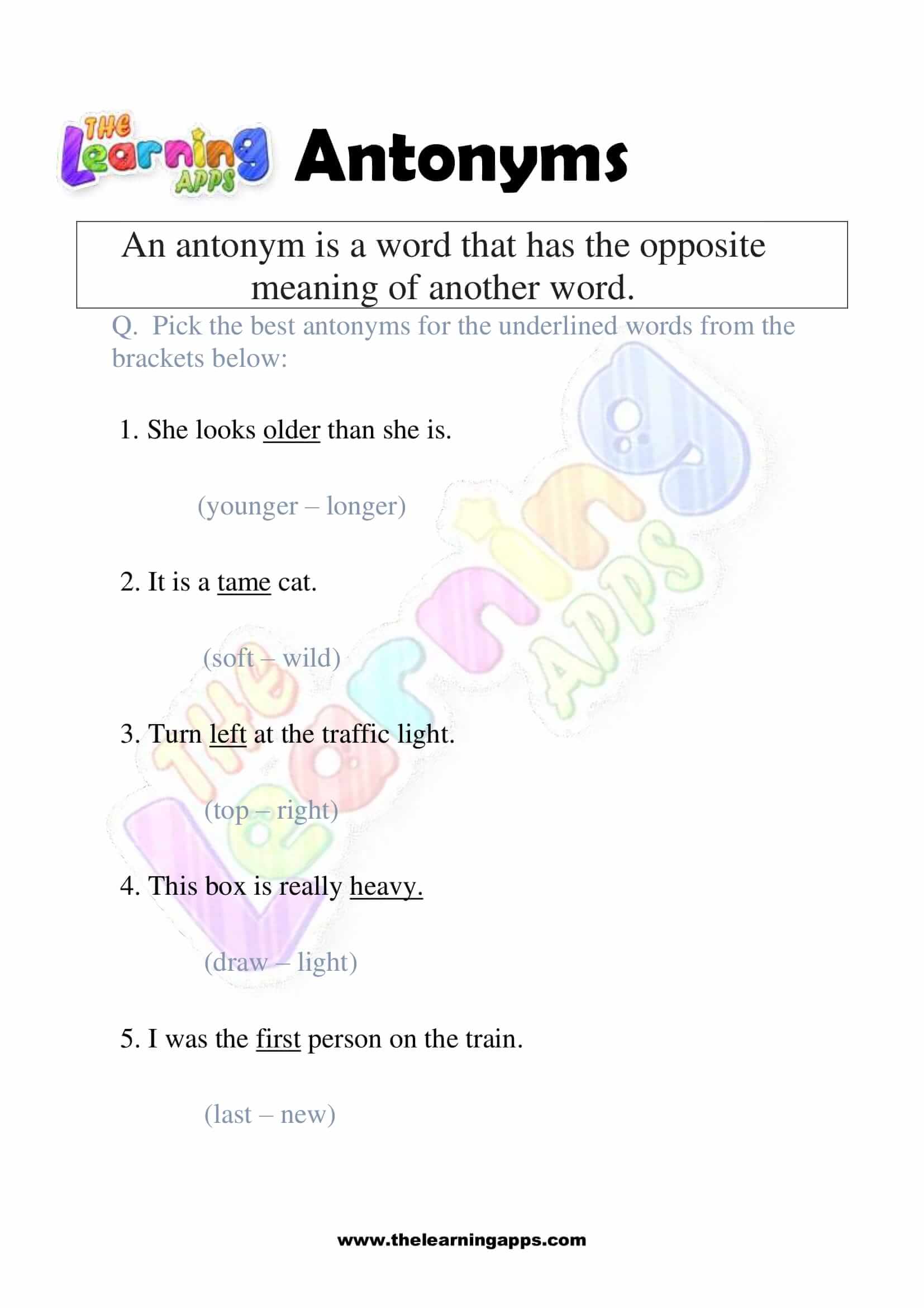 Views: 2,166 Coming soon.. Antonyms Grade 1 Worksheet 05 View All Activities Here you will have an educational and free printable Antonyms Grade 1 Worksheet for kids. By doing these worksheets, kids will learn about Antonyms in a fun and interactive way. Hit the download button and let the learning begin! Download View Category Antonyms Subject English Share This Related PostsAntonyms Grade 1 Worksheet 10August 16, 2022Antonyms Grade 1 Worksheet 09August 16, 2022Antonyms Grade 1 Worksheet 08August 16, 2022Antonyms Grade 1 Worksheet 07August 16, 2022Antonyms Grade 1 Worksheet 06August 16, 2022Antonyms Grade 1 Worksheet 04August 16, 2022