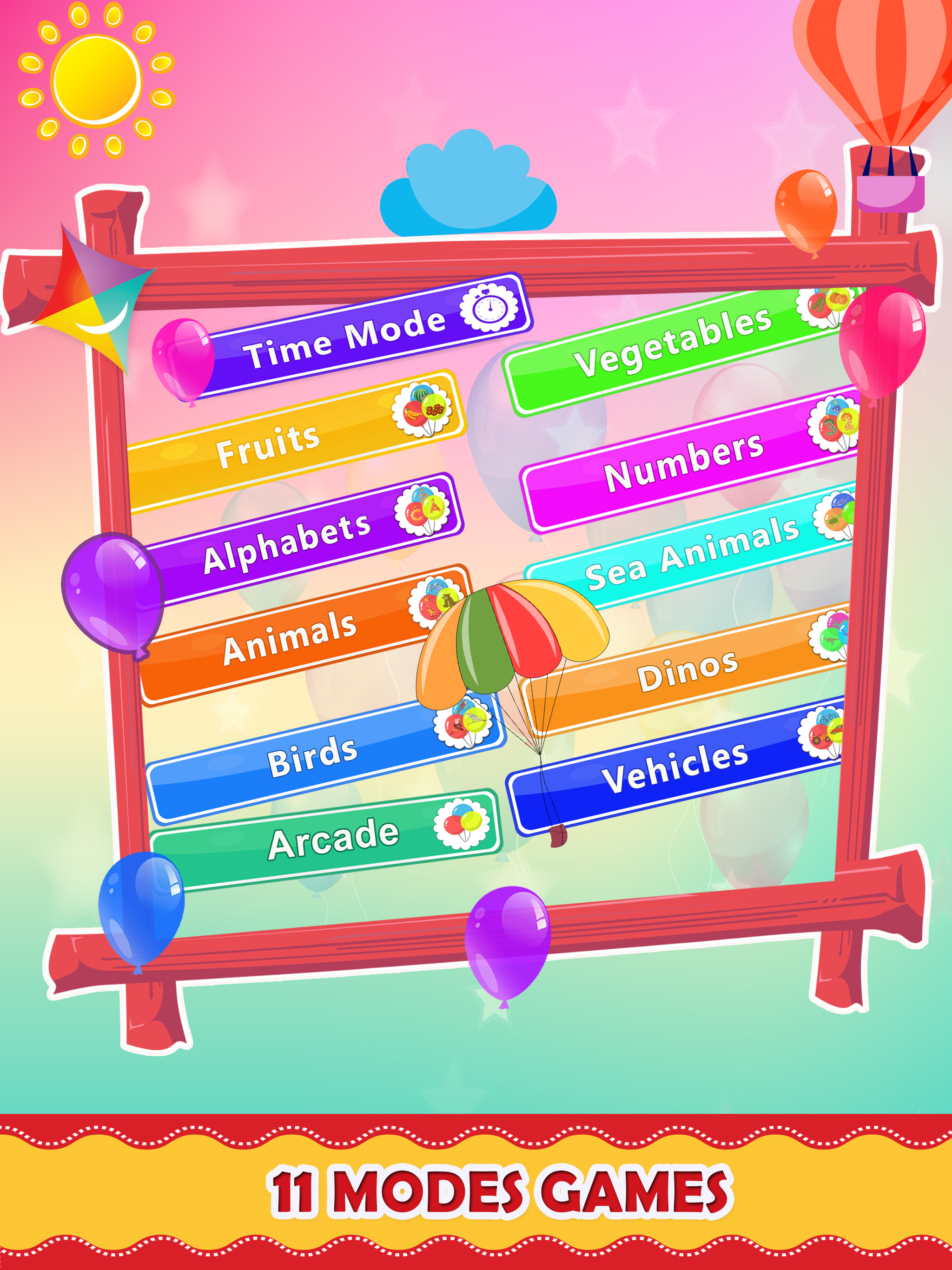 You’ll see balloons coming up your screens and the speed gradually increases. Not only young children it’s a balloon pop game for toddlers too. The free balloon pop app version will allow kids to play all modes. The pro version will unlock more levels in all the modes. Unlike other balloon pop apps it’s great for all age groups from toddlers to preschoolers and kindergarteners.