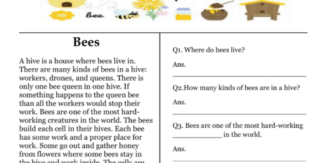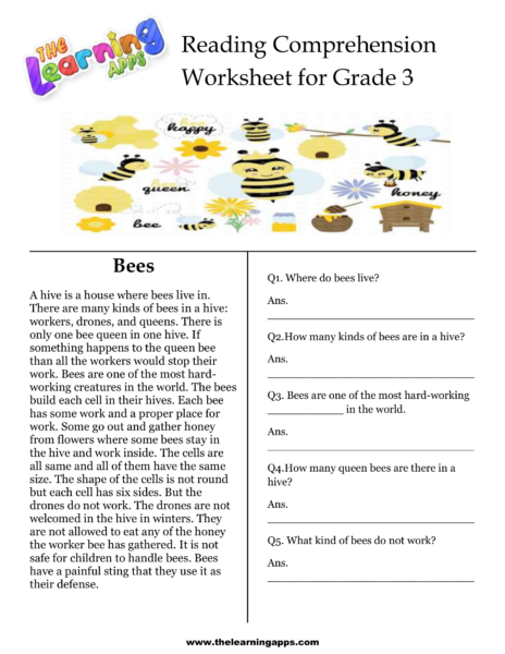 Download our free printable comprehension worksheets for grade 3. Bees Comprehension Worksheet is one of the best way to engage your child in learning.