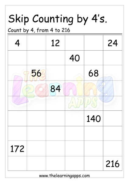 আমাদের স্কিপ কাউন্টিং বাই 4 ওয়ার্কশীটের মাধ্যমে শেখার আনন্দ আবিষ্কার করুন লার্নিং অ্যাপস. কিন্ডারগার্টেন এবং প্রাথমিক শ্রেণীর বাচ্চাদের জন্য ডিজাইন করা, এই রঙিন এবং ইন্টারেক্টিভ ওয়ার্কশীটগুলি গণনাকে মজাদার এবং সহজ করে তোলে। রঙিন ইন্টারেক্টিভ ভিজ্যুয়াল এবং সহজ ব্যায়ামের মাধ্যমে, শিশুরা তাদের কাউন্টিং এড়িয়ে যাওয়া সহজে আয়ত্ত করতে পারে। সংখ্যাগত দক্ষতা বাড়ানোর একটি উত্তেজনাপূর্ণ উপায়ের জন্য আসুন আজ 4টি ওয়ার্কশীটের মাধ্যমে আমাদের স্কিপ কাউন্টিং অন্বেষণ করি!