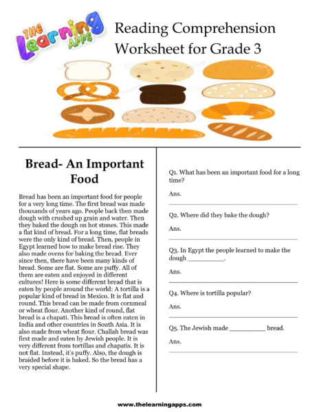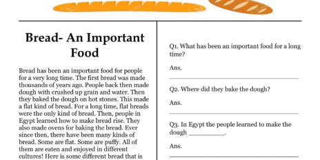 Download our free printable comprehension worksheets for grade 3. Bread-An Important Food Comprehension Worksheet is one of the best way to engage your child in learning.