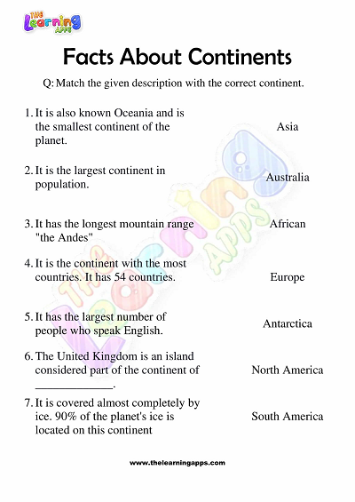 Facts About Continents Worksheets for…