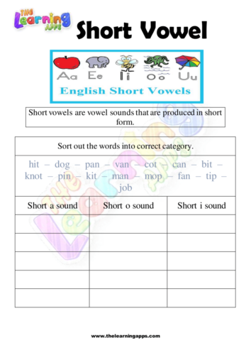 Short Vowel Worksheets