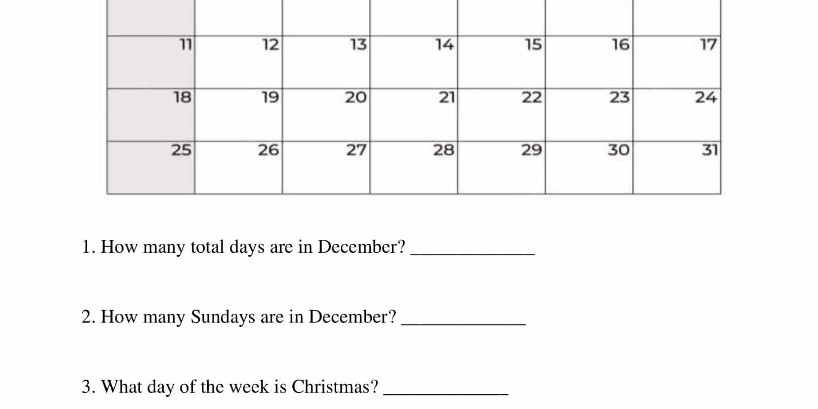 Calendar Worksheets – Grade 3 – Activity 7 View All Worksheets