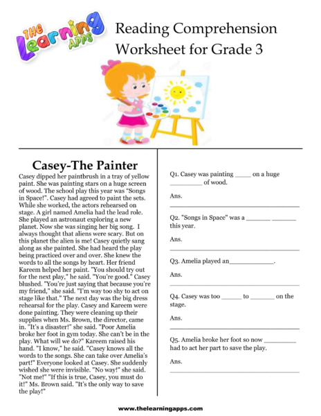 Download our free printable comprehension worksheets for grade 3. Casey-The Painter Comprehension Worksheet is one of the best way to engage your child in learning.