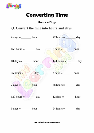 Here you can find various time conversion worksheets which will enhance your practice on converting Days to Year, Days to Weeks, Hours to Days and much more. The worksheets are designed keeping in mind the abilities of a 3rd grader. Download the printable conversions for time worksheet today!