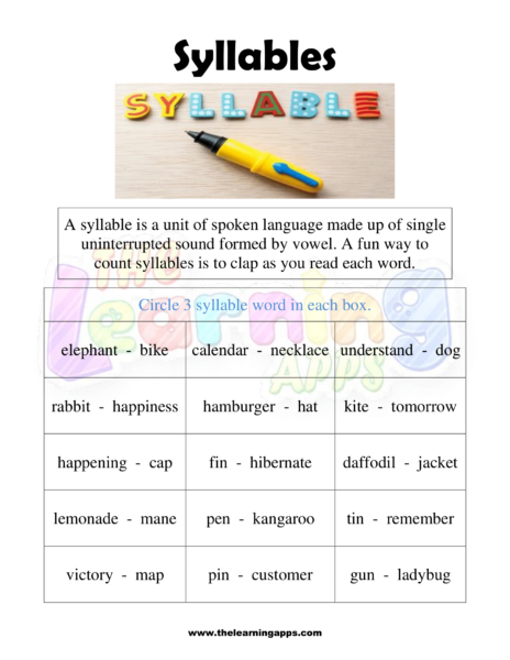Descargue esta Hoja de trabajo de sílaba 07 para que los estudiantes mejoren su alfabetización mientras se divierten en casa o en el aula. Al dividir las palabras en sílabas manejables, su hijo disfrutará construyendo una base sólida para mejorar su lenguaje.