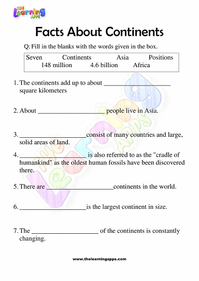 Facts About Continents Worksheets for Grade 3 – Activity 3 View All Worksheets
